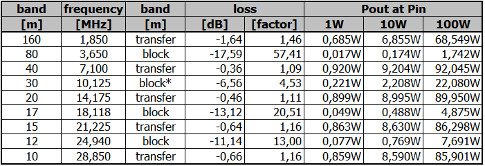 Instead of two stubs, one stub for 3,5MHz is used. One closed stub and one open stub. The losses were less than two stub design. If there are more than two radio's on the same site, multiple stubs are necessary for the right combination. Since I planned to used "only" two radio's the 3,5MHz stub will do the job. 50% of the bands are for radio A and the other ham bands are for radio B. The 30 meter band is not optimally suppressed since the notch is slightly next to the band. Since we do not use telegraphy, this is accepted.