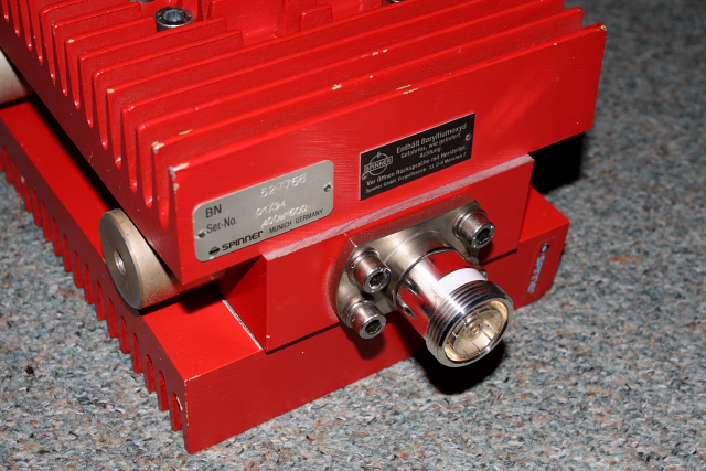 Ik had een dummyload van 100W, die groot genoeg was voor de testen die ik er mee deed. De sterkste zender die ik had, was 100W, dus de dummyload kan dat prima aan. Omdat deze dummyload ook een testpunt heeft, is dat handig om meteen een frequentieteller er aan te hangen. Maar omdat ik op het punt sta om een 400W buizenzender te bouwen, is een dummyload nodig die zwaarder is. Het zal niet getest worden met 400W FM omdat het een HF eindtrap is, maar een 100W dummyload is hiervoor echt te licht. Via via ben ik bij een Spinner "BN " terecht gekomen. Dit is de bekende rode uitvoering. Dit type kan continu 400W aan en voor iets langere tijd 1.200W. Tenminste, volgens opgave. Zelfs 5.000W bij één microseconde, maar ik geloof niet dat ik tegen die limiet kom. ;-)